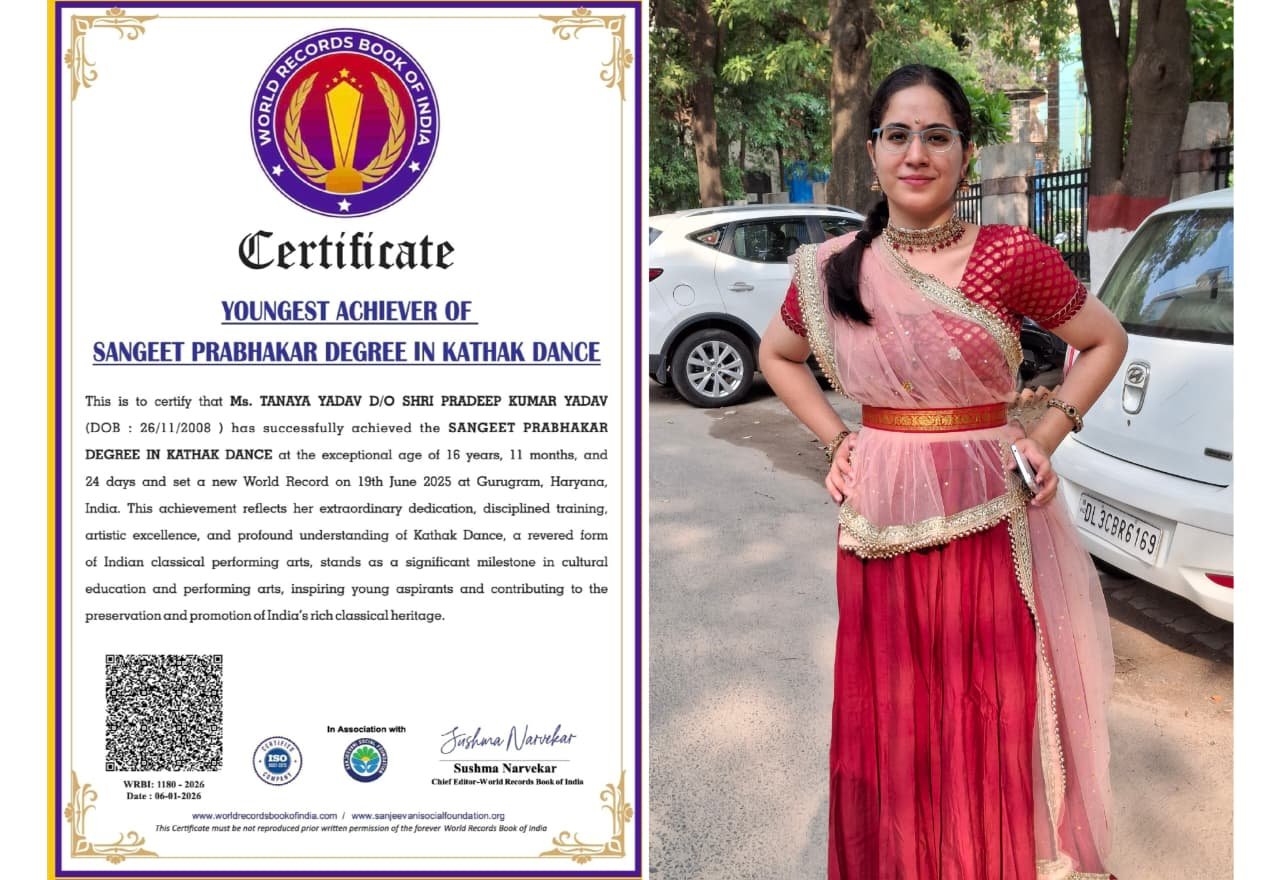 In a remarkable accomplishment for Indian classical dance, 16-year-old Tanaya Yadav from Gurugram has set a new world record as the youngest individual to earn the prestigious Sangeet Prabhakar degree. This achievement was formally recognized on June 19, 2025, marking an exceptional moment in Kathak, a discipline known for its demanding training and extended path to expertise. Originally from Jhunjhunu district in Rajasthan, Tanaya is the daughter of Dr. Pradeep Kumar Yadav, a distinguished Karate coach and acclaimed author.